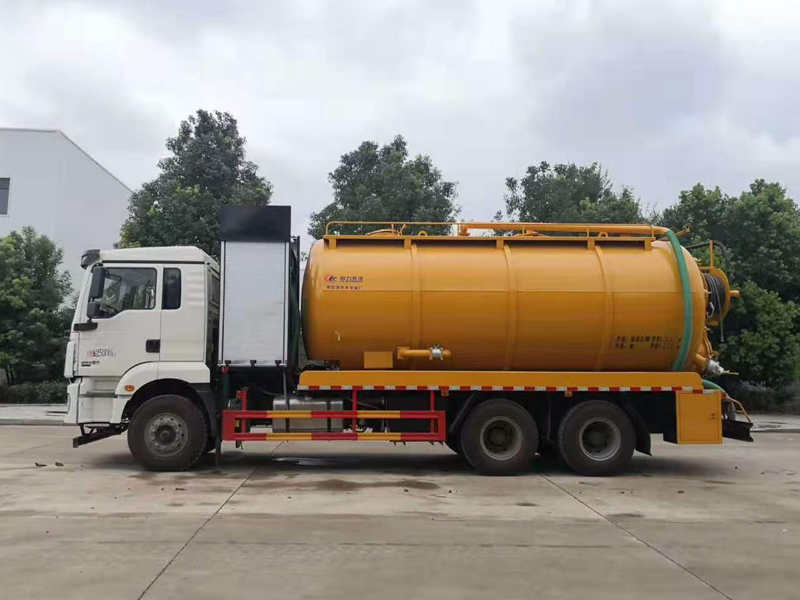 罐體容積約22立方左右,清水罐9立方,其余為污水,罐體8mm厚,封頭8mm厚,舉升頂為自卸中置頂,副駕駛一側(cè)清水罐和污水罐用DN100球閥互通,另罐頂裝一個(gè)互通;副駕駛一側(cè)按照公告圖片安裝爬梯;清水罐:罐頂水泥罐口一個(gè),帶爬梯,帶品浮330高壓泵,尾部液壓卷盤,左右各裝一個(gè)消防栓進(jìn)水口,清水罐裝兩側(cè)各一個(gè)小球閥,罐底裝一個(gè)DN65排水閥。吸污罐:采用濰柴420馬力副發(fā)動(dòng)機(jī),帶42水循環(huán)泵,一個(gè)水泥罐口,罐內(nèi)爬梯,污水罐底部201不銹鋼內(nèi)襯,罐體內(nèi)部防浪板加固,水箱裝在左側(cè);副駕偷排150鋁合金球閥用氣動(dòng)閥帶,吸污罐尾部大蓋不開啟,液壓開600小蓋排污;左側(cè)一個(gè)150球閥排污口,右側(cè)兩個(gè)100鋁合金球閥;側(cè)抽一個(gè)100鋁合金球閥;罐體尾部?jī)蓚?cè)工具箱(左邊工具箱兩層,右側(cè)加大),安裝冬季氣吹水,箭頭燈,贈(zèng)送配件:80米25號(hào)高壓管,1根8米吸污管,一個(gè)9公斤噴頭。油漆:工程黃