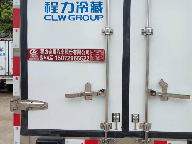 (2)廂板材質:內外壁板選用國內優質玻璃鋼(不吸光、隔熱性好、硬度強、抗氧化);中間保溫層為XPS擠塑聚笨板或者PUR聚氨酯板;廂體厚度8CM。地板采用鋁花紋板,門邊條采用迷宮式橡膠密封條。