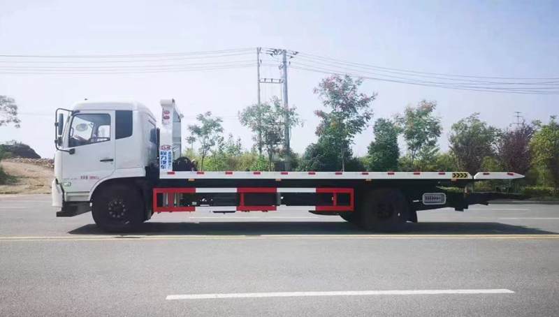 上裝配置:10噸上裝,10噸卷揚,6毫米厚花紋板,進口液壓件,10噸三節后托臂,平板做下沉,尾部帶液壓翻轉尾板,托插座壹對套,拖叉兩對,抱胎裝置一套,綁帶陸條,輔助小車,洗手水箱,雙鏈鉤。大梁尾部加固.