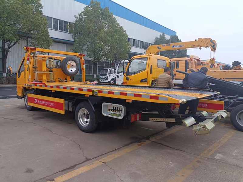 上裝配置:2噸上裝,4噸卷揚,20米鋼絲繩,有三種板面可選,一體板3.8+1.3=5.1米左右,液壓翻轉板4.1+1=5.1米左右,液壓伸縮板4.2+1.2=5.4米左右,寬2.3米,雙側聯動操作,配警燈喊話器一套.輔助小車一套,四根捆綁帶,底盤合格證,整車合格證,保修手冊。(注意:藍牌清障車超重,上戶需要拆除,尾板,油缸,警燈,安裝后防護.)